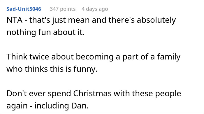 But that quickly changed when the Redditor started opening the presents. Turns out, their in-laws decided to play a “joke” on them. Unprompted. With no heads up. It was so bad that eventually, Virtual_Ad_3893 teared up and bailed.