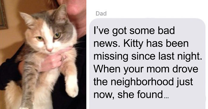 Load More Replies...For those saying this is FAKE. This exact story happened to my friend George. The cat went missing, and later they found a dead cat laying on the street. My friend asked his mom to come and identify the cat (it had some very specific markings) and after inspection mom burst into tears: "It's him," she said. George put the body in some plastic bag, spent hours searching for a spot to bury it and digging the hole himself. After a few days his mom calls him and says "the cat just came home." We laughed so hard after hearing this story. He buried some random stray cat! (don't get me wrong, I feel really bad for that cat too:/)