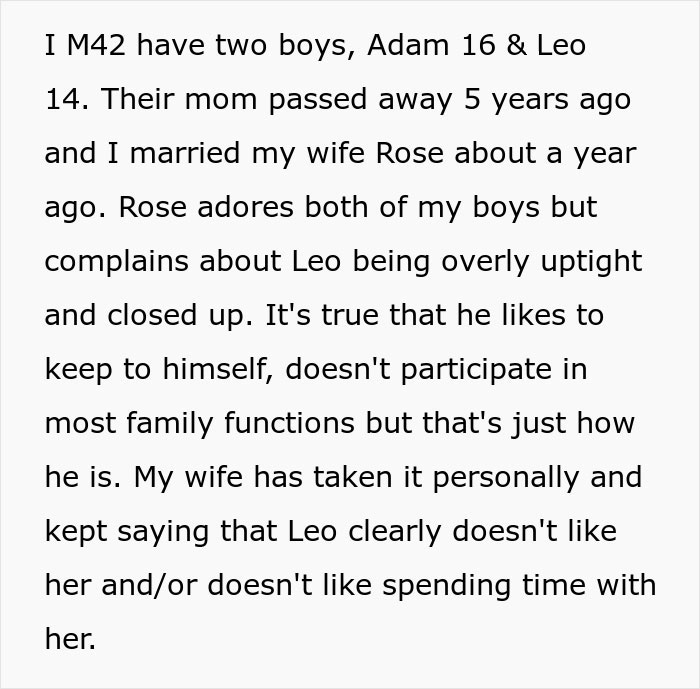 Rose is allowed to not be best friends with Leo, but she should not be allowed to bully him out of their family vacation and manipulate his brother into thinking it was his fault. It is sad to hear that one family vacation could blow up into such a big mess, but thankfully, the boys’ father is working hard to get things under control. Let us know in the comments what you think of this whole situation, and if you have experience dealing with a difficult stepparent, we’d love to hear how you handled it.
