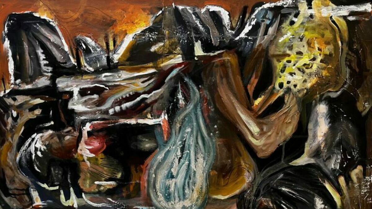In Fractured Agony (2024), Banerjee's style is on full display, with reds and blacks clashing. Emotion pulses through Banerjee’s canvases. He treats art as a battle; "the canvas isn’t just a surface, it’s where I battle". He pours raw feeling into every stroke, calling his process a "wild fire" erupting on the canvas. He even declares his paintings are "not quiet or comforting, but to shake you, to wake you up". Each stroke carries intent, so viewers sense structure amid the frenzy. He says the canvas is a battle and he "loves the mess of paint", showing he values raw vitality over polished technique. In short, his art balances chaos and control, capturing emotion with clarity.