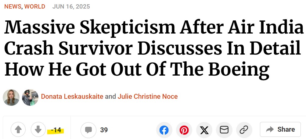 My tweet on the air india crash survivor was from an insta post on an ex times of india journalist. So i assumed its true.