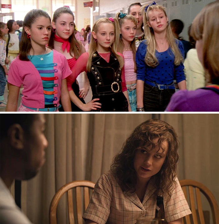 Before becoming the face of Captain Marvel in 2019’s movies Captain Marvel and Avengers: Endgame, Brie starred in Room, Short Term 12, and a number of other feature films, including 13 Going On 30 (2004). In it, she was one of the cool kids clique called the Six Chicks. Besides bearing less resemblance to her current grown-up self (compared to, say, Elijah Wood), she was also credited as Six Chick #3, so having no name might have added to the fact that not many noticed her here.