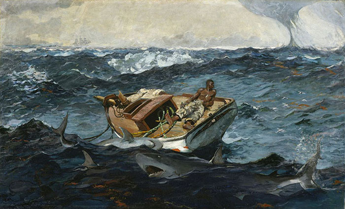 Apparently based on a really happening in Havana harbor. Young boy goes swimming, shark attacks, and the seamen went out to try and save him.