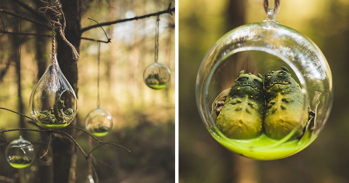 My wife and I made glass bubbles hangers using our (Katyushka Art Dolls) cucumbers figurines.