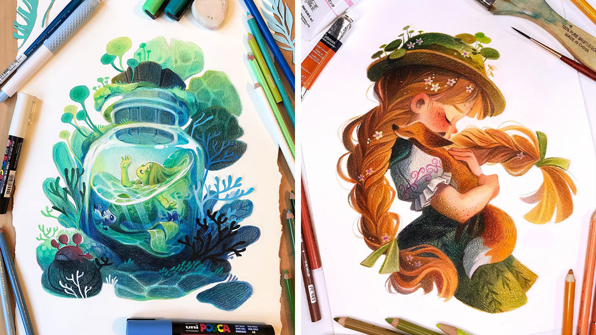 Kate P., the artist behind this series of vibrant drawings filled with whimsy and wonder, works with various traditional media such as colored pencils, gouache, watercolor, and even markers to create eye-catching illustrations that are impossible to ignore. She kindly shared a few words with us, introducing her art for anyone encountering it for the first time: “I think the words ‘whimsical or magical’ would come to mind. I've heard a lot of people saying heartwarming as well, so those would be the two things I would say to describe my work first. I enjoy drawing anything related to adventure and friendships, so the emotions I would like to convey the most through my illustrations would be happiness, maybe surprise, and above all kindness, etc.”