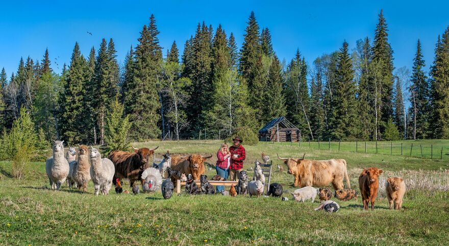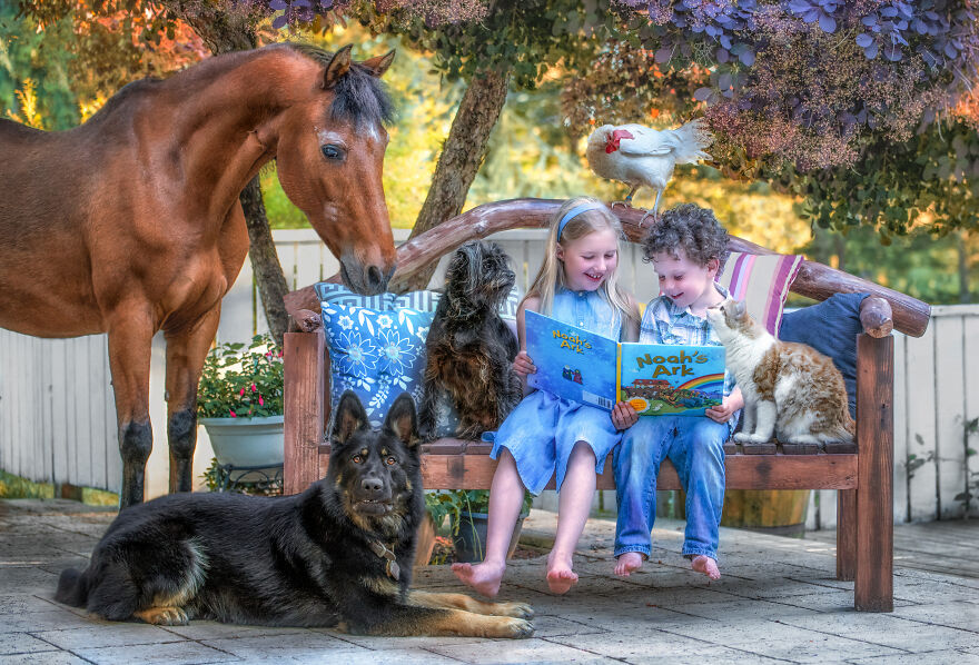 These are lovely, but it makes me wonder if the animals are composited into the portraits, otherwise it's quiet the choreography feat to have these lovely sentient creatures to stand in their particular spots for a photoshoot! Also the use of HDR is a little strong, but makes the picture vibrant nevertheless with over-saturated colors.