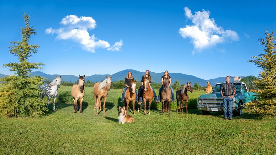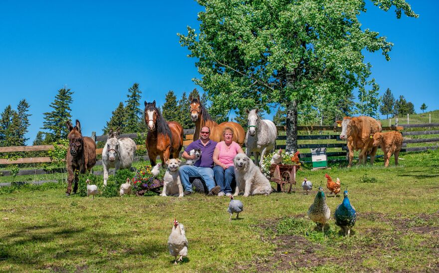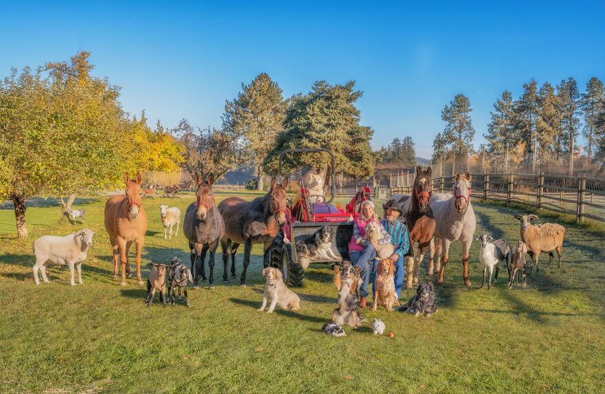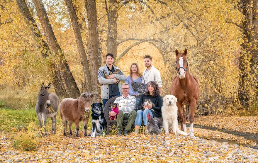 You always see family portraits on the walls of people’s homes, but for me, the family doesn’t stop with the people. What about all of our furred and feathered “Farmily” members? They are just as much a part of the family as any human component… so, I decided to change the way people look at family portraits! I travel the country photographing full “Farmily” portraits. We include everybody from the largest horse, to the smallest guinea pig, mouse, or snake.