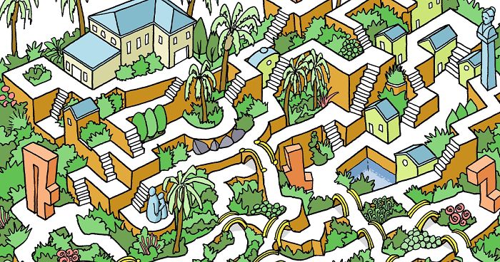 Art comes in many different forms and some are more... complicated than others. Some could say even a little bit puzzling. These mazes by artist Sean Jackson is the perfect example that art can not only be exceptionally pretty but also excellent mind-twisters. Mr. Jackson first fell in love with mazes as a child when he discovered Larry Evans' book, "3 Dimensional Mazes," and tried to capture those worlds in his drawings as well. He kept it up as a hobby ever since. He says that "smaller mazes only take a few hours. The largest and most complex mazes take over 30 hours to complete," but he manages to finish it by spreading out the work over days or weeks. But he doesn't stick only to mazes. "I draw portraits for observational practice and discipline with ballpoint work. It is a way to void the rut of only drawing little buildings".