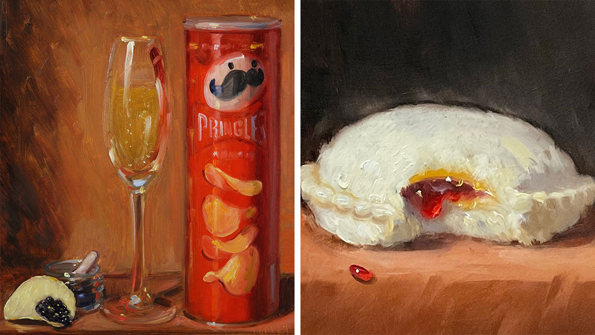 At first glance, these paintings look like classic still lifes inspired by the Old Masters, with soft lighting, warm backgrounds, and a calm, contemplative mood. But look closer, and you’ll see fast food – burgers, fries, sodas, and familiar packaging – transformed into timeless oil paintings. Artist Noah Verrier, a former art professor from FSU and now a full-time painter in Florida, uses classical techniques to elevate everyday objects, blending irony, symbolism, and postmodern flair in a way that invites each viewer to interpret the work for themselves.