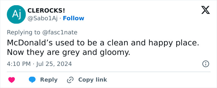 "It's a major challenge. Many brands operating in this space, especially McDonald's, have attempted to go upmarket, by investing heavily in their restaurants. This provides a much-improved dining experience, but has also certain consumers who may miss its more down-to-earth, accessible feel," he told Bored Panda.