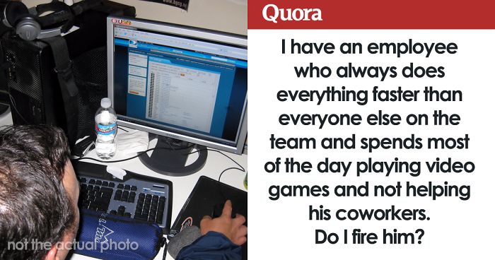 Not always though. This boss took to Quora to gauge people’s opinions on one particularly bright employee, who finished tasks so well and quickly that there was time left over for video games at the end of each day. The boss, harboring the kind of old-fashioned attitude that needs to be abolished in this day and age, didn’t like this at all. “Between the hours of 9am-5pm you are my bitch and you must work (or at least pretend you’re working) even if you have completed your daily quota,” you can imagine them saying to themselves while pondering whether or not to fire this excellent, but renegade worker.