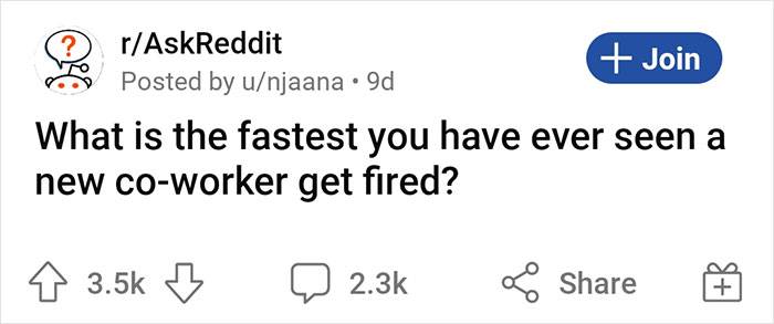 Redditor r/njaana asked their fellow r/AskReddit users to open up about the fastest that they’ve ever seen a new coworker get fired and, wow, did they deliver! Their stories are candid, hilarious, and will make you consider the wonderful fact that the global economy is still intact when there are so many ‘employees’ like this moving from job to job.