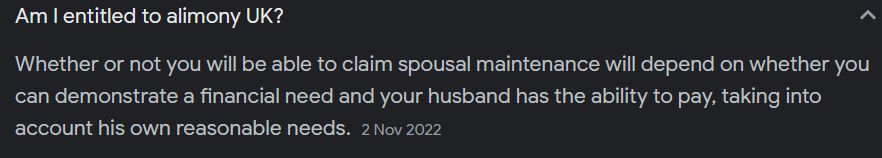I'm in my 60s and never knew we had spousal maintenance (alimony) in the UK, too, & have never known anyone who got it after a divorce. #MindBlown alimonyuk-...1cc439.jpg