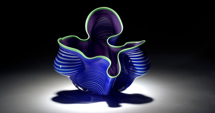 This Blue & Green Splash Bowl is just one of many variations of this style vessel. The light green stripes paired with the cobalt interior creates an interest juxtaposition and contrast.
