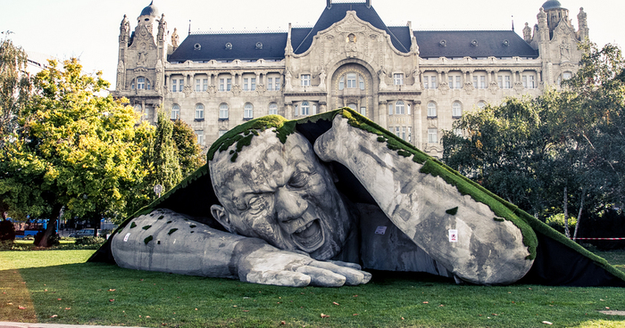 Artist Ervin Loránth Hervé created an impressive sculpture called “Popped Up” that depicts a giant man crawling out of the earth. The polystyrene sculpture is located at Széchenyi Square in Budapest, Hungary, and was one of the highlights for the Art Market Budapest 2014 international contemporary art fair.