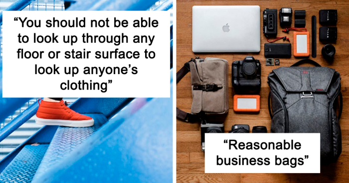 I'd just want to ban all glass or metal grate catwalks and stairs in contemporary architecture. My job has me visiting conference centers, hotels and flagship office building fairly frequently and there's just so much accidential peeping tom architecture going on...