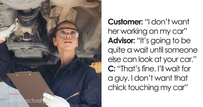 “Who is that chick? Is she going to be working on my car? I don’t want her working on my car,” the male told the advisor, who replied that in this case, he’d have to wait for quite a while. Let’s see how this whole story escalated below, and I’m telling you, karma has been served.