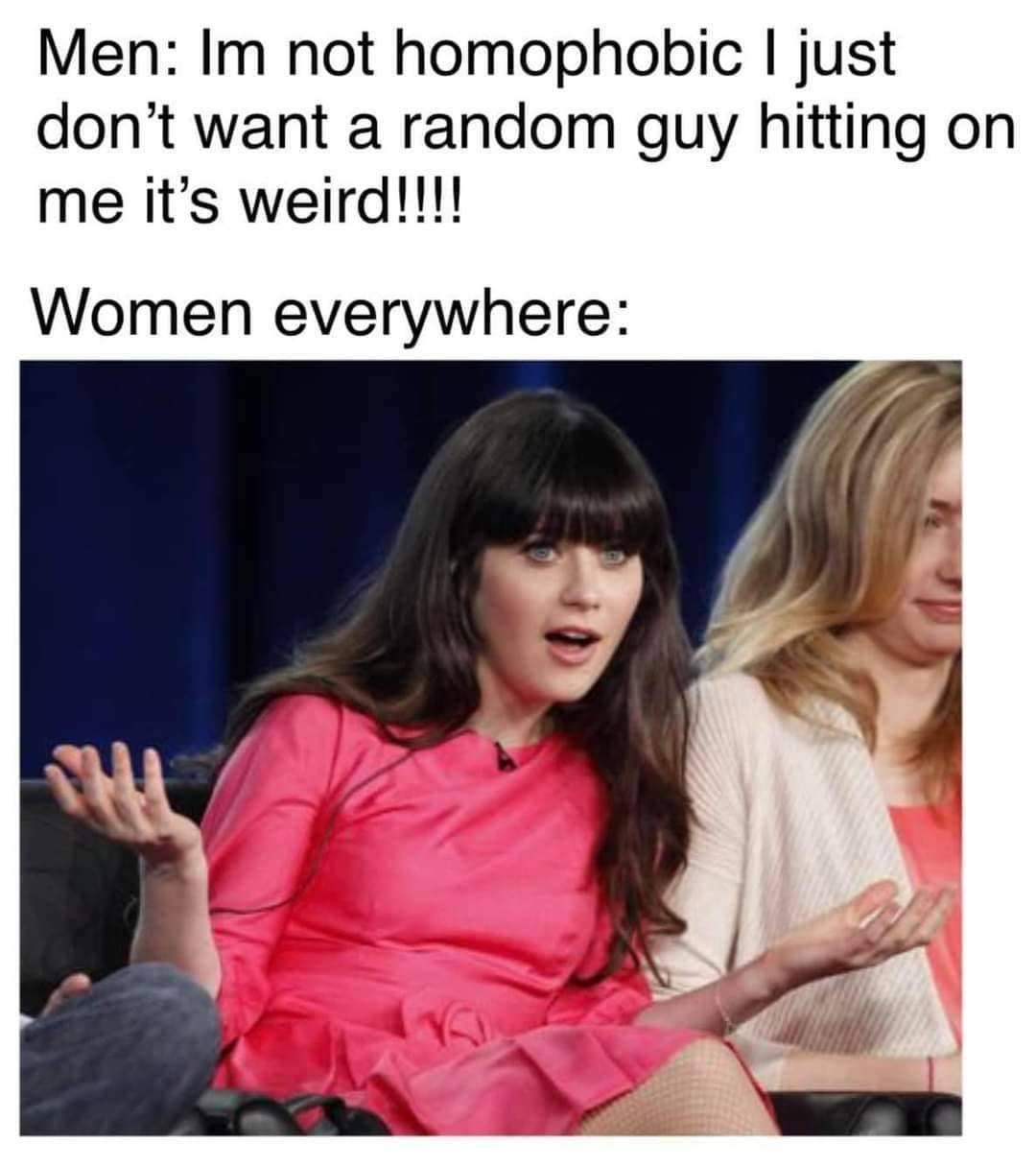 Is the point of this meme that I should be more offended if gay people hit on me?