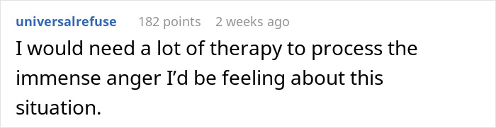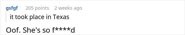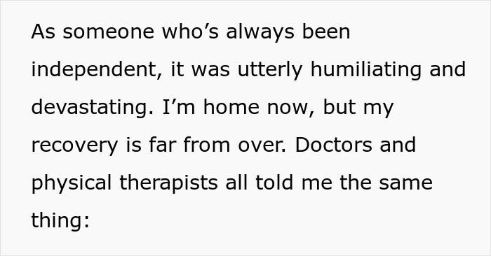 Load More Replies...Is Texas really that backwater? (Rhetorical question, no offence meant to Texans). As difficult as it would be, I would try to not be resentful of hubby, because — yeah, he fücked up — but he knows he fücked up. Labouring on the fact isn’t going to change, and not to mention if he’s driven away that’s one less support for OP (assumedly. Not knowing their situation). OP has every right to be angry — and should be!! But I don’t think she should cut her nose off to spite her face, so to speak. I had a minor injury compared to OP last year (broke my ankle in three places, apparently the worst break you can do in an ankle) and I needed all the support I could. Of course, if OP is angry enough that she actively resents her husband and wants to end things, that’s different.