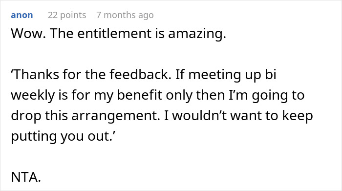 The family didn’t take this news well, of course. They had just lost their free biweekly meal ticket, and they weren’t happy about it at all. They accused the OP of being ungrateful, ironically, and argued that, since his family is wealthy, he should continue to pay for their meals, out of some twisted obligation. Excuse me, but last I checked, wealth doesn’t come with a side of “pay for everyone else’s bad manners.”