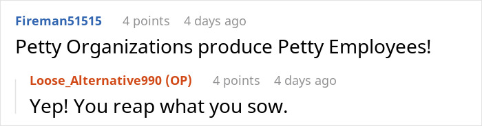 After this ordeal, other employees started taking more interest in the overtime policy. “Someone in his team did a bit of digging and found that the policy actually said that a task that takes 7.5 minutes or more can be rounded up to 15 minutes but less would be rounded down. This was raised, and he restored the 15 minutes for each of those days,” the Redditor tells us.