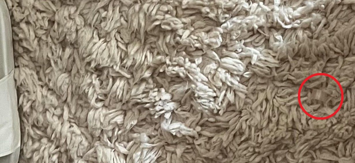 I think it's the bit of bronze colour not far from the skirting board in the vicinity of the black cord