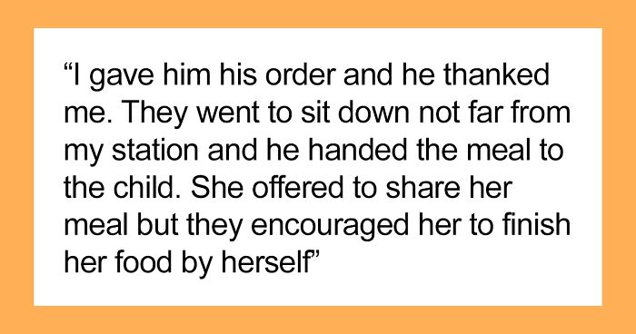 The employee was serving food for a three-person family who only ordered one meal, even though the man could tell they were hungry