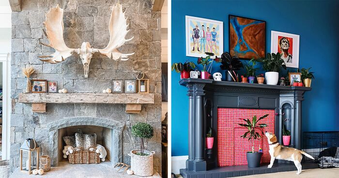 You can decorate a fireplace mantel with your collectibles, art pieces, plants, flowers, or mirrors.