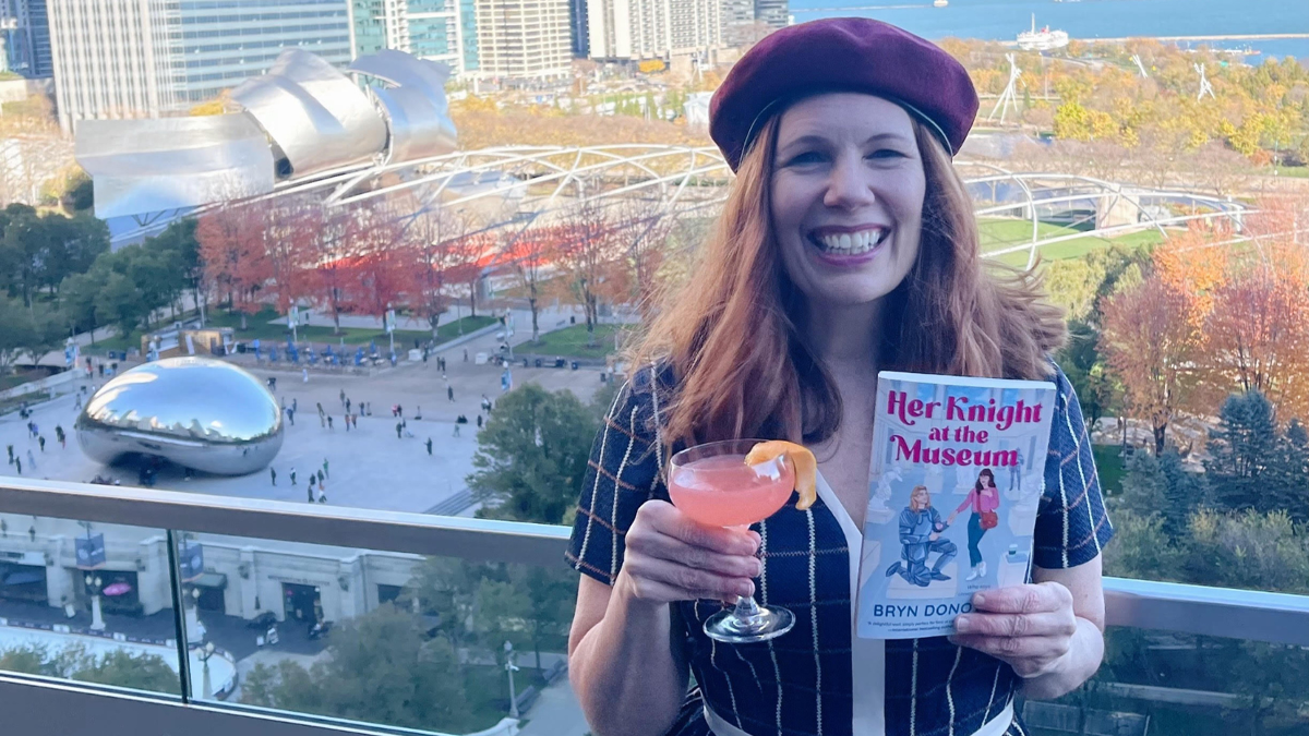 Bryn’s book is a romantic comedy called Her Knight at the Museum, and it’s about a medieval knight who comes back to life in modern-day Chicago when a woman breaks his curse
