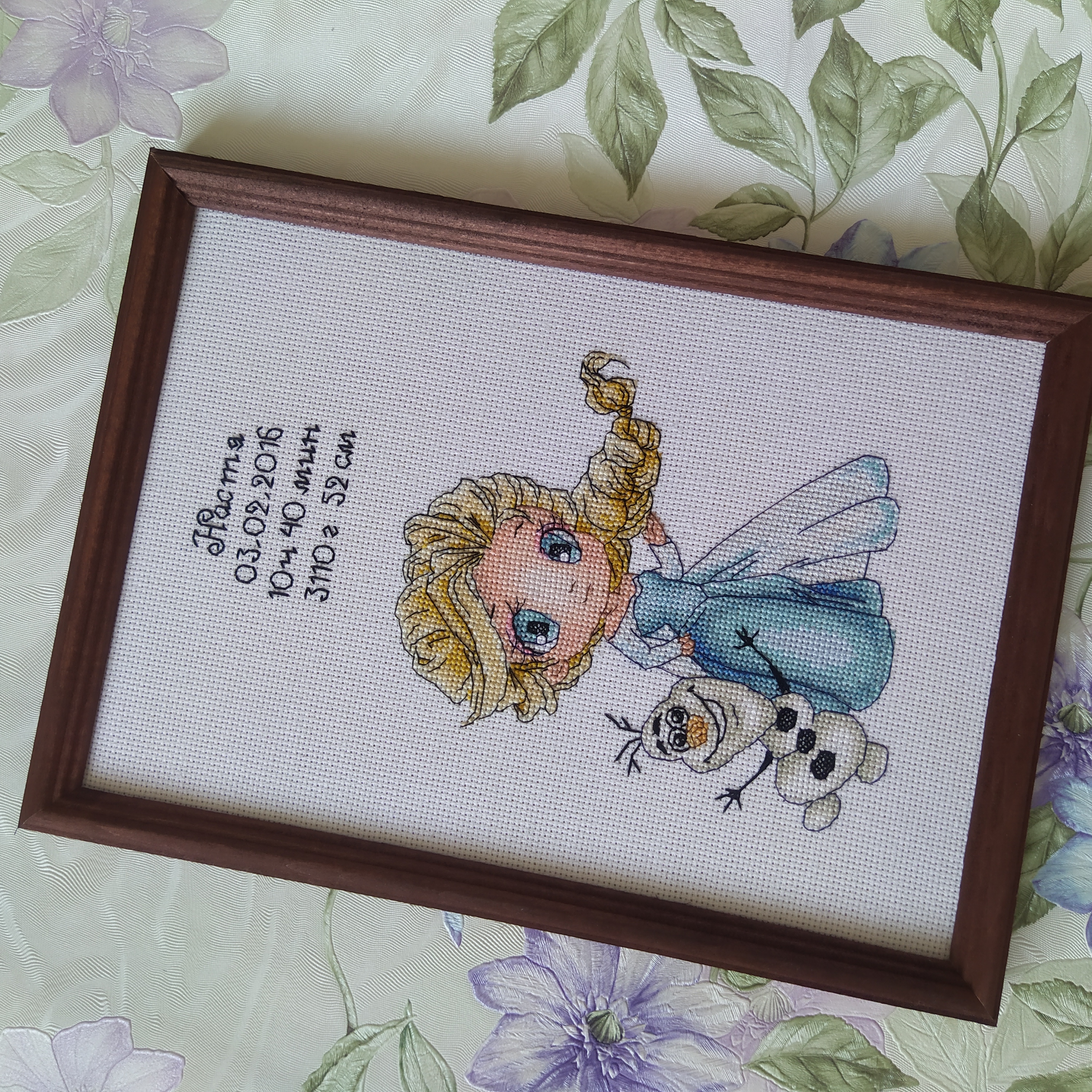 I love to cross stitch. And sometimes there are orders from mothers for their children, who lovingly relate to the memories of the date and time of birth, weight and height of the baby. Having picked up a beautiful picture, you get a finished cross-stitch that will remind you of a wonderful event for a long time and evoke tender feelings.