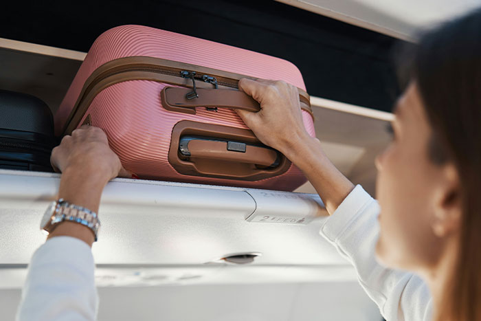 3. Stow your carry on luggage in the overhead bin above your seat and not in the compartments above the front rows. I've seen a lot of passengers seated on rows 16–31 stow their carry on bags in overhead bins above seats on rows 1–4. Just because you got to board first doesn't mean you get dibs on which compartment you can place your stuff. You don't even realize you're only delaying passengers from deplaning since the passengers in the front rows would have to go all the way back to retrieve their carry on bags because you took up space intended for them.
