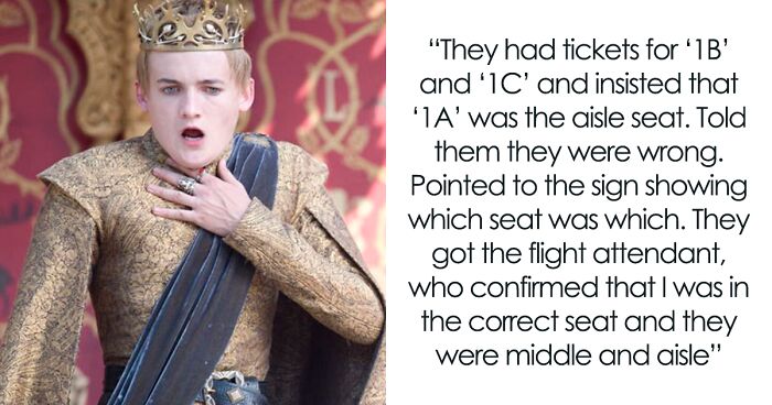 A quick back and forth determined that they didn’t know how seat numbering on planes works, and they were insisting on a seat that wasn’t technically theirs. Soon the flight attendant got involved and confirmed that it was, in fact, not their seat.
