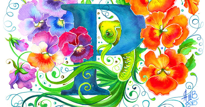 I created a series of watercolor flowers for every letter of the alphabet. Each letter was done while my 1-year-old was napping (all new Moms out there will appreciate how precious those naps are – especially in the first year).