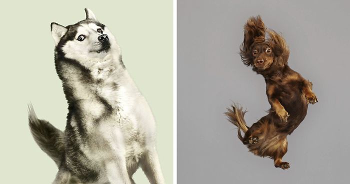 The project began when the photographer decided she would like to capture pictures of her favorite animals from a new perspective.  "Not every dog was born to fly, but some have a great talent and they are practically shooting stars. A few dogs had fun so much that we were able to repeat the jumps. The expressions on their faces mainly reflect the surprise of the first flight and, in most cases, the first jump gave the best pictures."