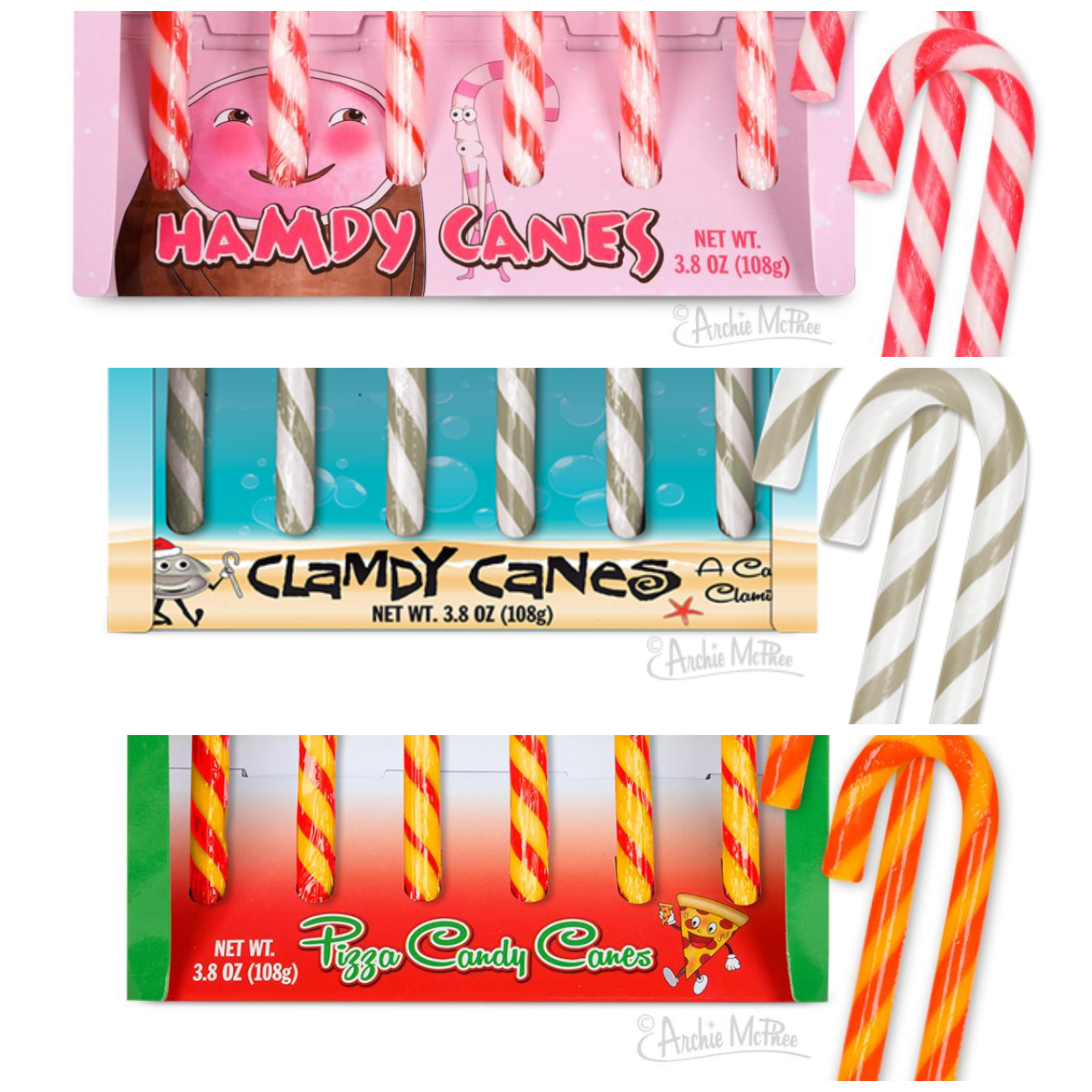There is also kale, mac n cheese, pho, onion, ketchup, hotdogs, mushrooms, bacon, chicken, and sardine flavored candy canes.