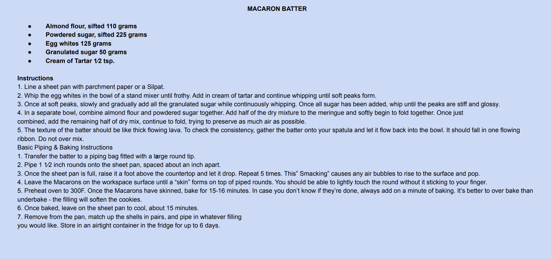 Really, a lot of this is from people who don't want to do the work, but i think it's just more fun to make it. I posted it on the macaron picture, but heres my recipe for macarons- always works. I suggest taking a class, too though. (Sift the powdered sugar and almond flour!) there are many tips online as well. :) Screen-Sho...cc-png.jpg