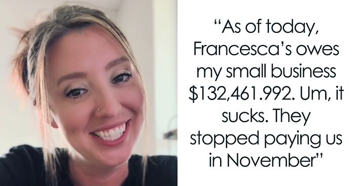 So, the Original Poster (OP) owns a small business named Mugsby and specifically works with Francesca’s clothing chain to sell their products. However, in her recent video, the author admitted that as of today, the company owes her business $132,461.92. “Um, it sucks,” the woman claims, and it’s really hard to disagree with this.