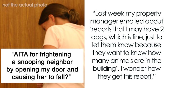 Noises can really drive you insane, but even more annoying are those neighbors who come over for no reason and are too nosy for a stranger. This Redditor was so fed up with her neighbor snooping around her front door that she swung it open at the moment the woman was searching for something on the floor, wanting to scare her off, but made her fall.