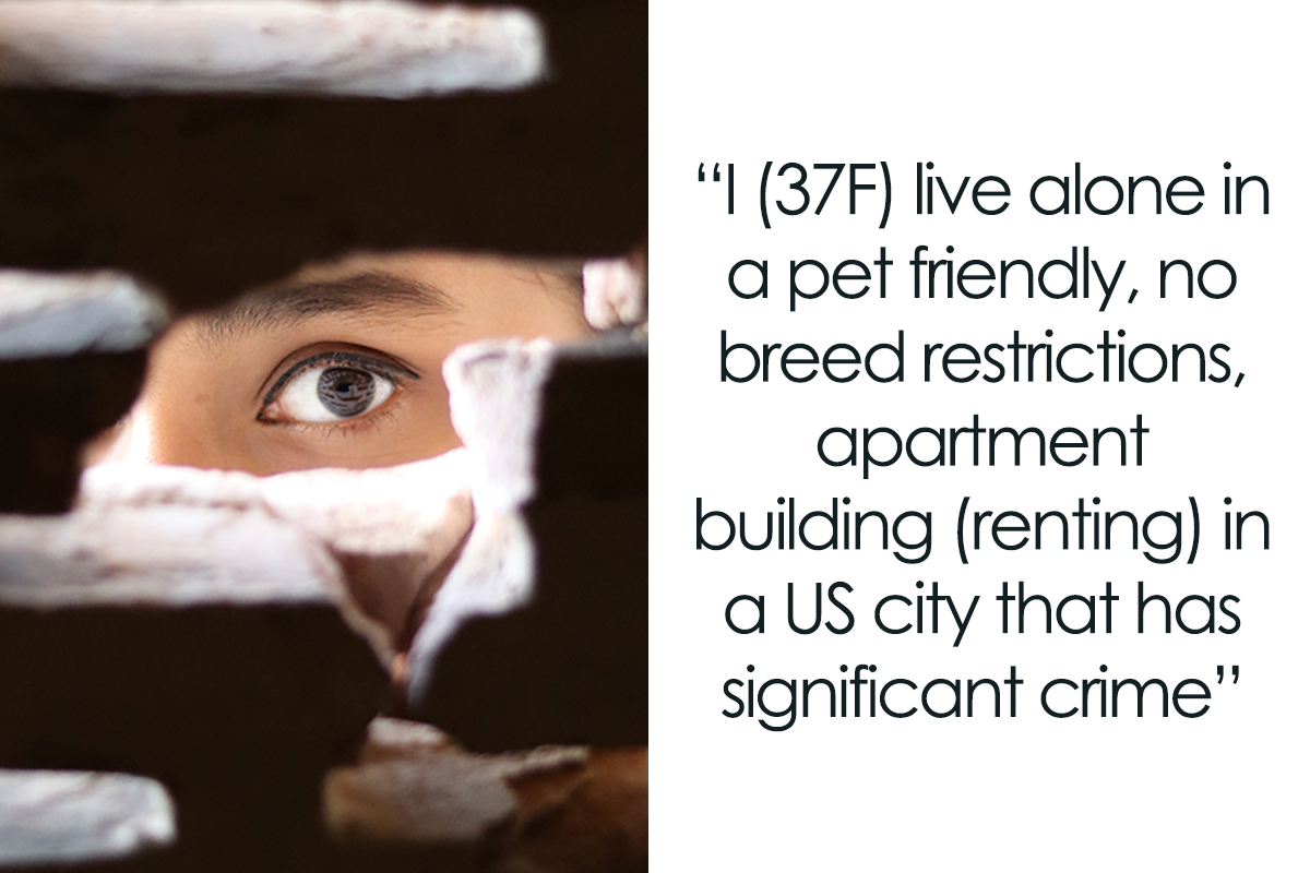 The Original Poster (OP) is a woman living alone and she has been living in the same apartment for 5 years. The neighborhood she lives in is known for high crime levels and the building doesn’t have a secured gate, so the only extra security measure she has is her dog.