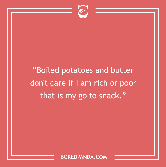 "Boiled potatoes and butter don't care if I am rich or poor that is my go to snack."