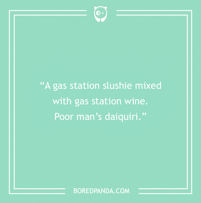 "A gas station slushie mixed with gas station wine. Poor man’s daiquiri."