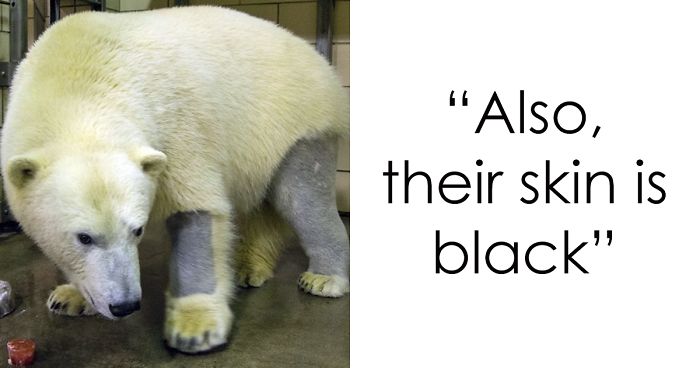 "Polar bear fur is not white, it’s transparent, like fiber optics. Also, their skin is black."