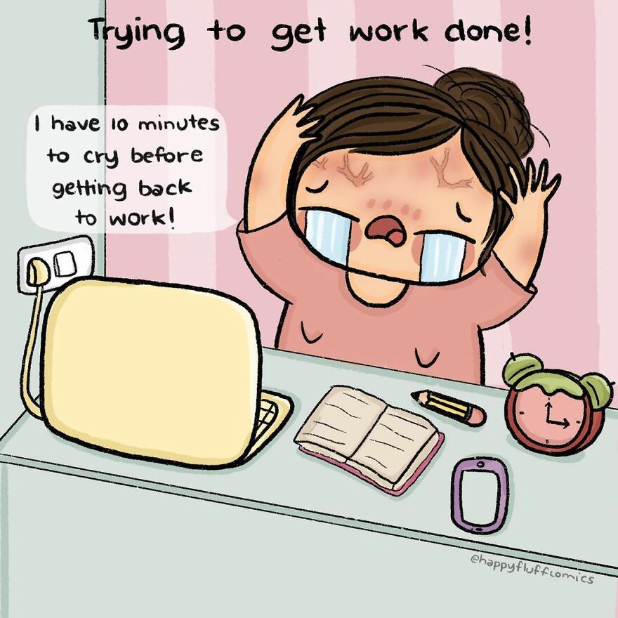 With that in mind, Indian illustrator Akshara Ashok started creating her comics. In them, she portrays all kinds of struggles and problems she runs into during her daily life. Akshara shows that we are not alone and that everyone has better and worse days. With her comics, she tries to make you laugh and brighten your day. The artist manages to make fun of difficult situations and herself, showing that the problems are not as important and earth-shattering as they might seem.