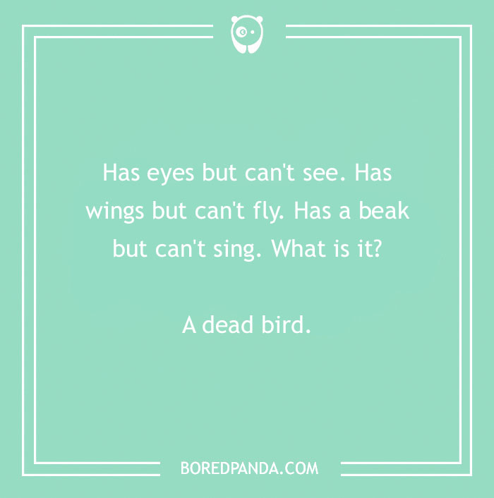 What's red and bad for your teeth? A brick. What's grey? A melted penguin. What's green and fuzzy, has four legs, and will kill you if it falls out of a tree? A pool table.