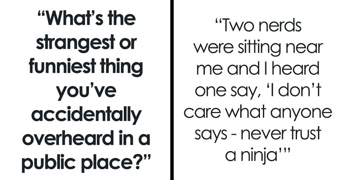 Clearly, I’m not the only one who knows this experience, as Redditors have recently been sharing the funniest things that they’ve overheard strangers say in public. So enjoy scrolling through this list full of confusing and amusing conversations, and be sure to upvote the ones that you would have liked to hear more of!