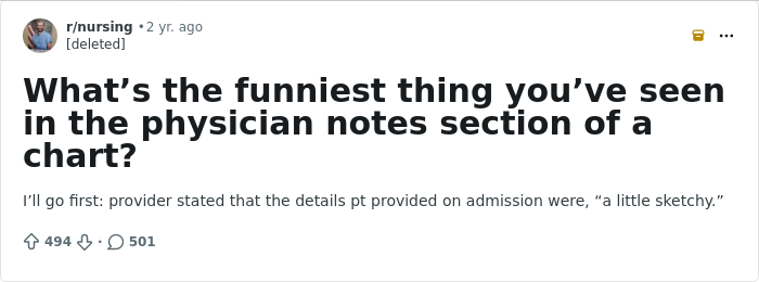 According to Residency Advisor, some of the most amusing chart entries don’t stem from clinician error at all, but from the way patients describe their own symptoms or behaviors. When physicians document these statements faithfully and objectively, the resulting wording can unintentionally come across as funny.