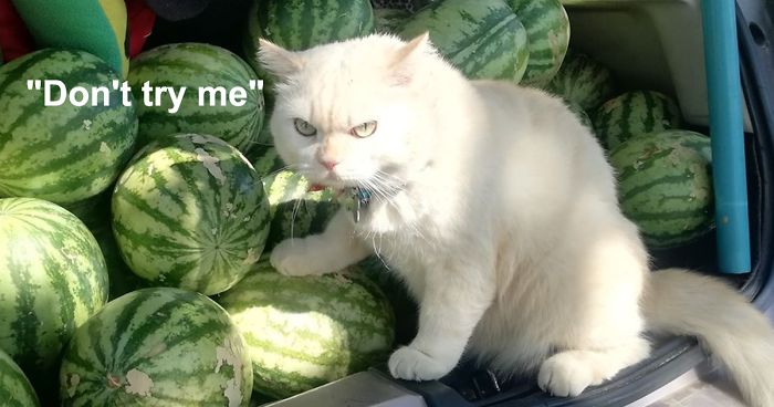 The grumpier the cat, the funnier it is. It’s the feline law of nature. Don’t believe me? Just take a look at the furball named Pearl, an experienced supurrvisor from Thailand who has been guarding a watermelon farm for almost 6 years. Pearl’s supurrpowers lie in his ability to send chills down one’s spine with glaring stares.