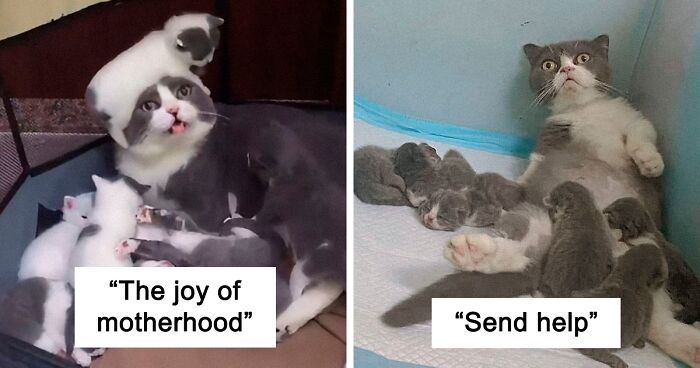 It all started when Shawna B shared a picture of a fluffy little family. "One of my favorite very specific image genres is cats that look completely unprepared for the realities of parenthood," she tweeted.