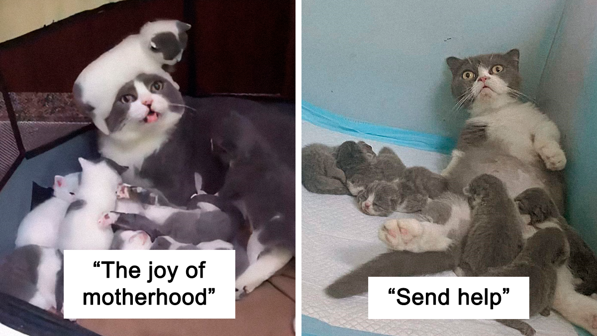It all started when Shawna B shared a picture of a fluffy little family. "One of my favorite very specific image genres is cats that look completely unprepared for the realities of parenthood," she tweeted.