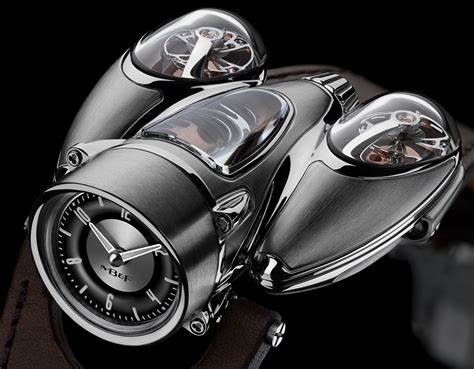 The watch face is at the peehole. This is actually real and is the MB&F Horological Machine №9.